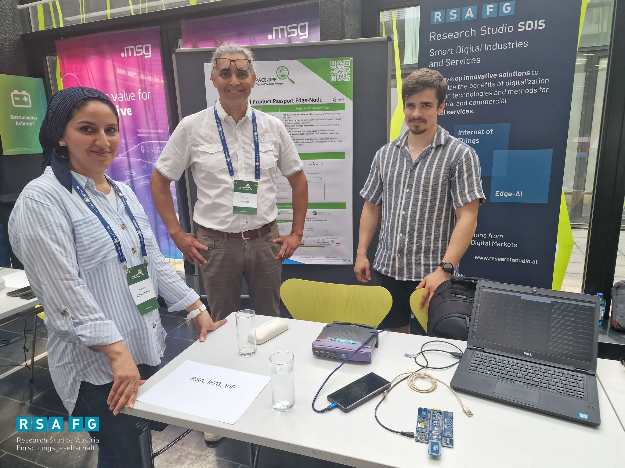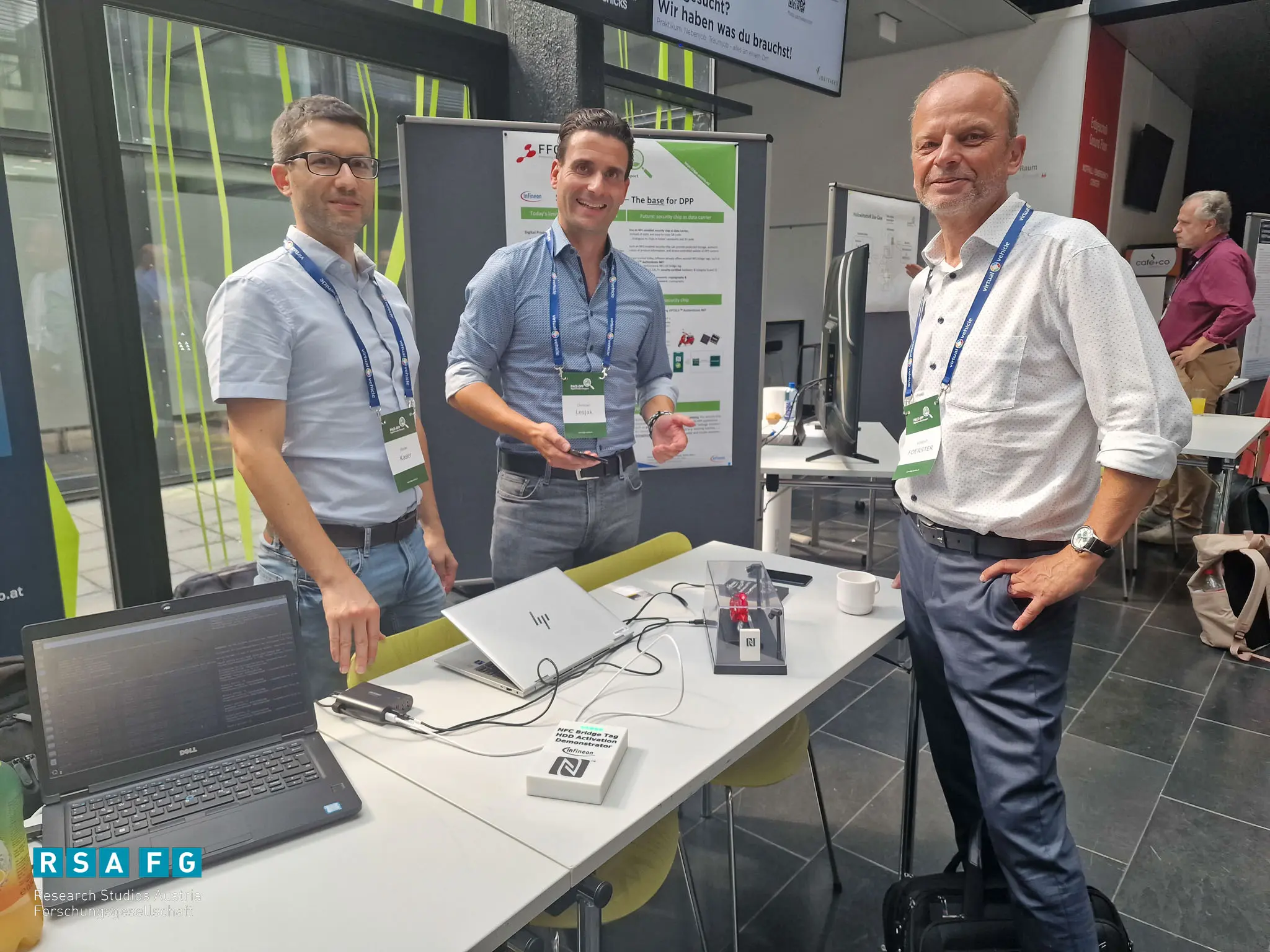 Vertreter*innen aus Wirtschaft, Industrie, Politik und Forschung vernetzten sich und informierten sich bei den Organisationen, die den Digitalen Produkt Pass vorantreiben. An über 20 Ständen in der Aula der FH St. Pölten gab es Demonstrationen, Einblicke und Informationen zu den neusten Entwicklungen.