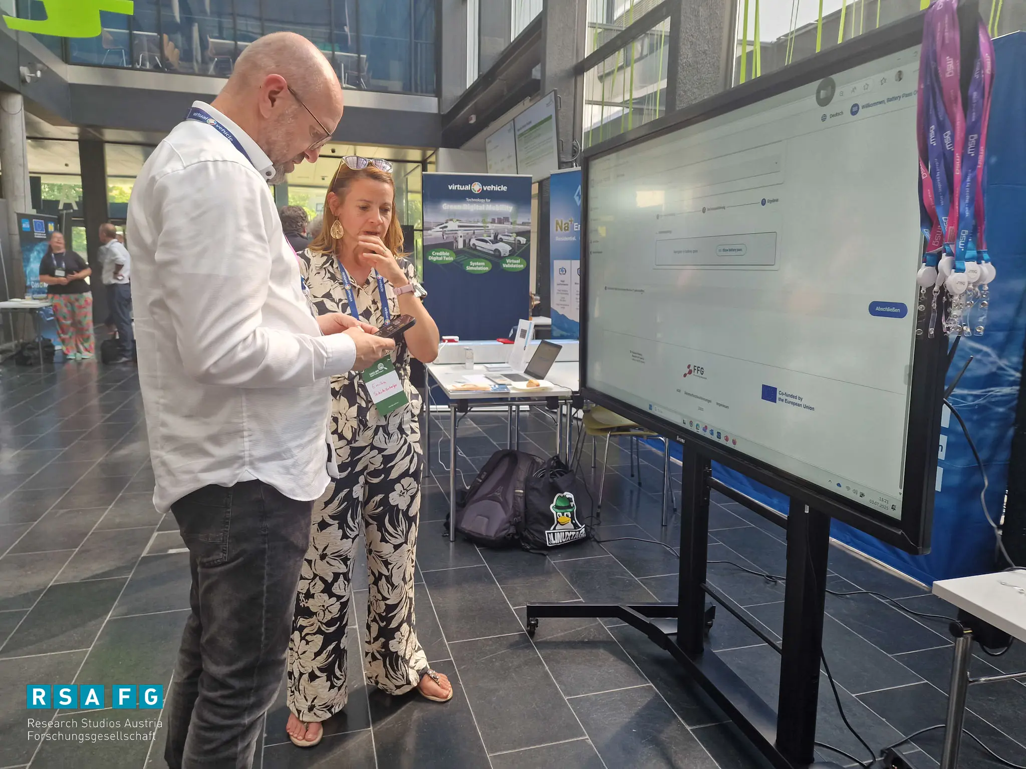 Besonders viel Interesse gab es an den ersten beispielhaften Umsetzungen von technologischen Durchbrüchen, wie an der souveränen Handhabung von Daten und Identitäten mittels EU-ID konformer Identifikation und Freigabe. Durch Verschränkung der zugänglichen Daten mit digitalen Services konnte eine nachhaltige Produktkonfiguration (Stichwort: Green Configuration) anhand eines innovativen, stationären Energiespeichers demonstriert werden, was zukünftige Daten-Service Ökosysteme anschaulich darstellte.
